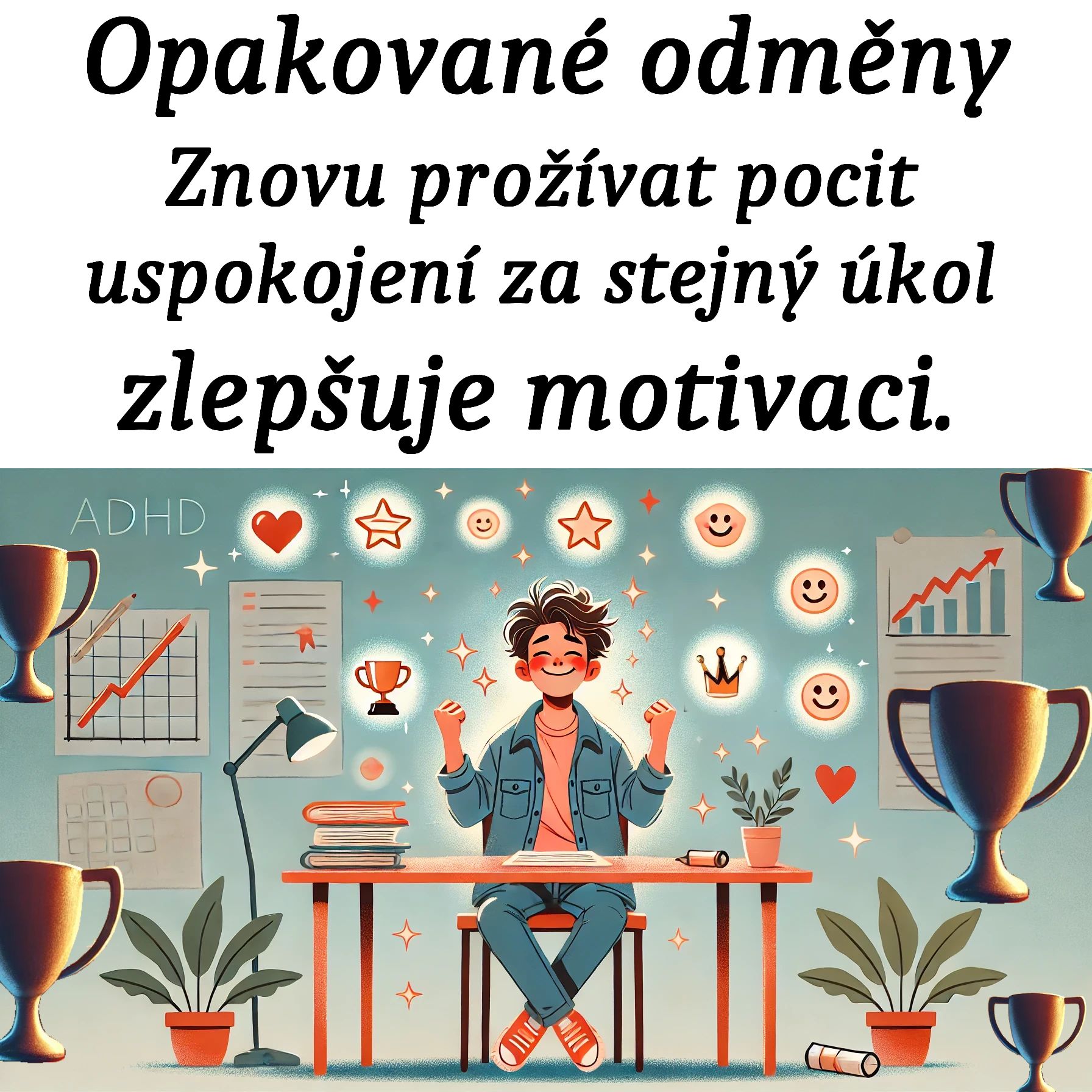 Nicméně výzkumy ukazují, že opakované připomínání si úspěchu (např. „udělal jsem to!“) může opakovaně aktivovat dopaminový systém – i u ADHD – a tím podporovat motivaci, i když reálná odměna už dávno proběhla.