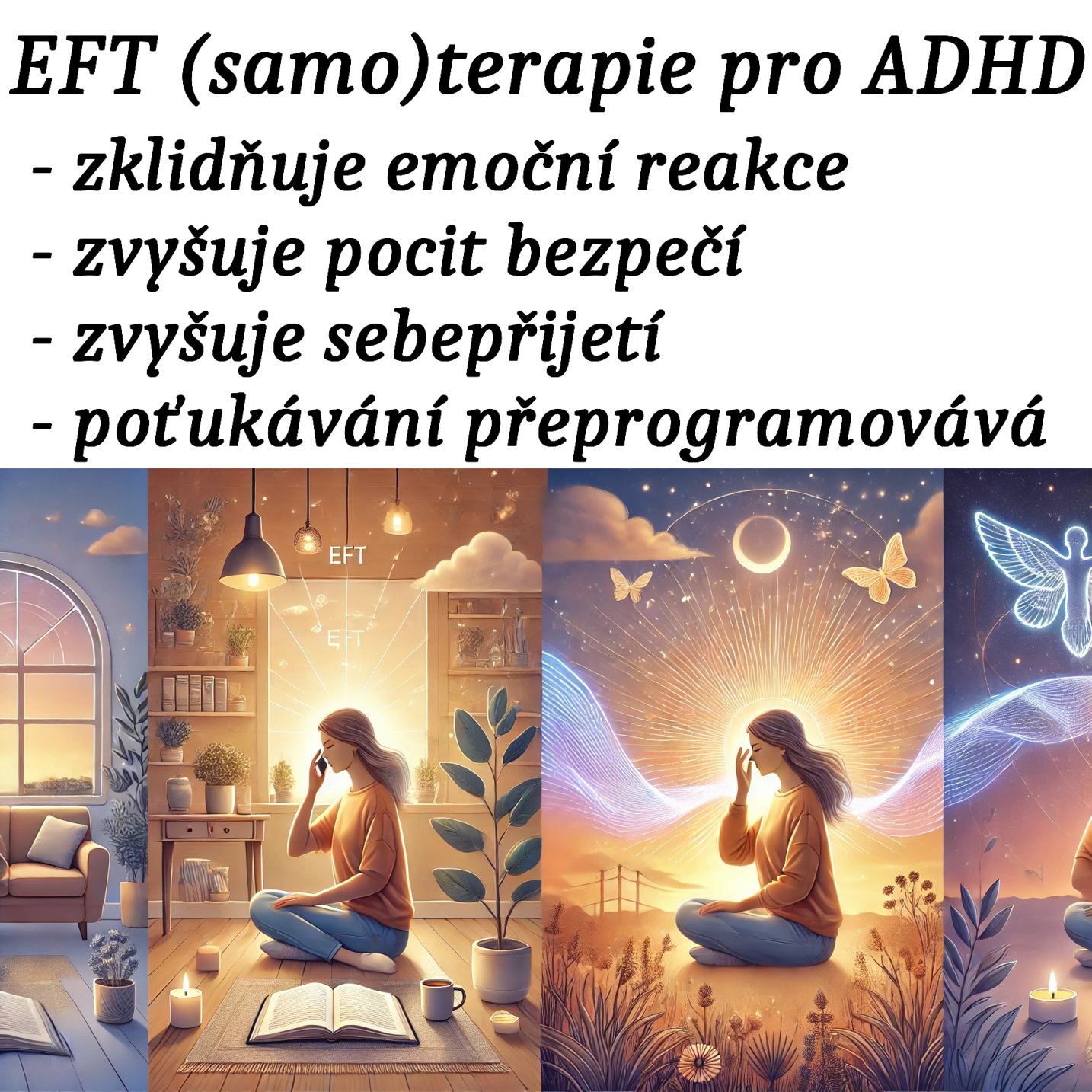 - Nesoustředěnost, přetížení, impulzivita a silné emoce jsou běžné projevy ADHD – EFT pomáhá je regulovat.