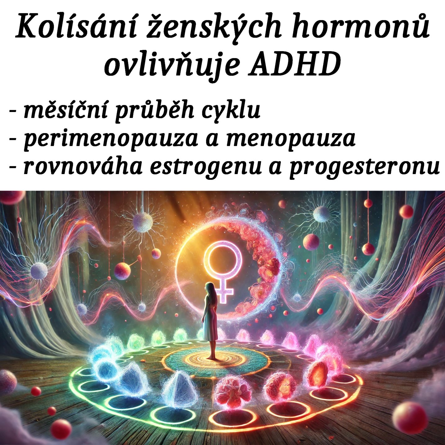- 📊 infografiku poměru estrogen/progesteron a jeho vlivu na ADHD.
