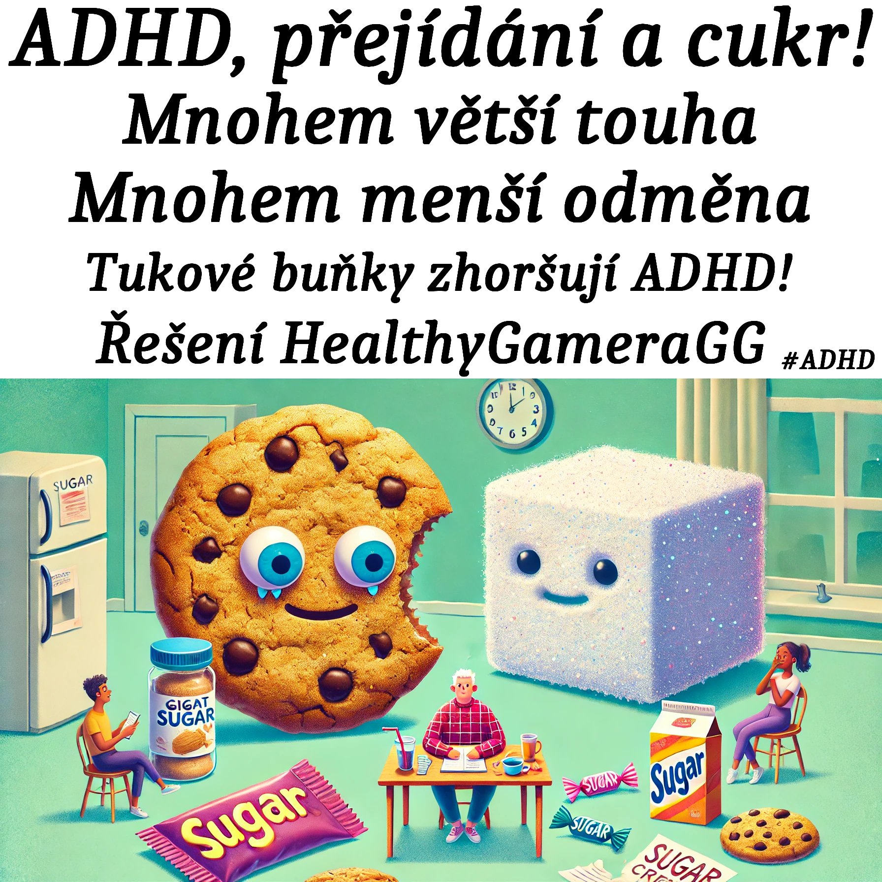 ADHD, přejídání a cukr – Mnohem větší touha, mnohem menší odměna, tukové buňky zhoršují ADHD! Řešení HealthyGameraGG.
