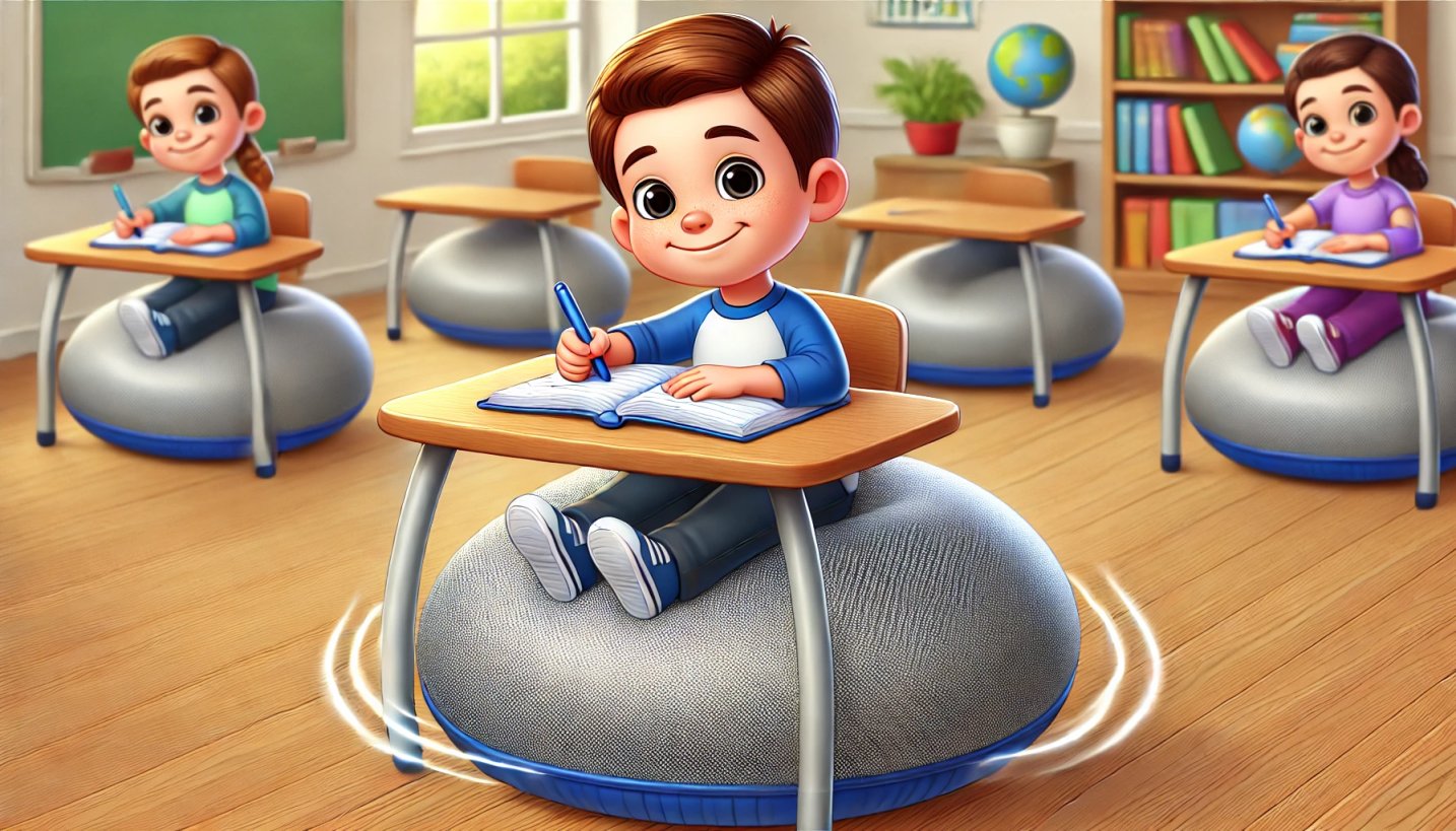 Pomáhá jim udržet pozornost, zmírňuje nepokoj a podporuje správné držení těla při sezení.