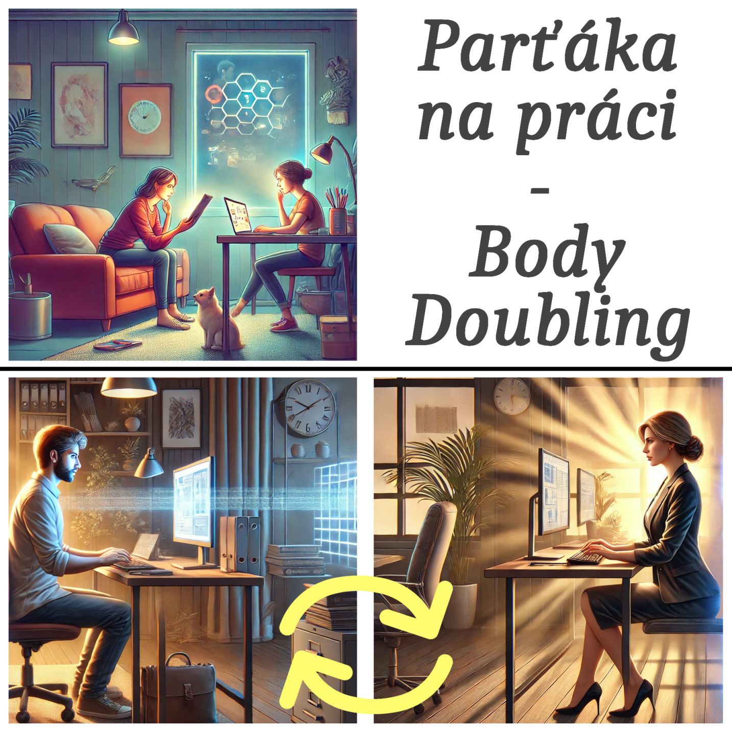 Body doubling je strategie, při níž osoba s ADHD vykonává úkoly v přítomnosti jiné osoby, tzv. "body double", tichého parťáka. Nemusí sedět vedle vás, stačí i po telefonu nebo online.