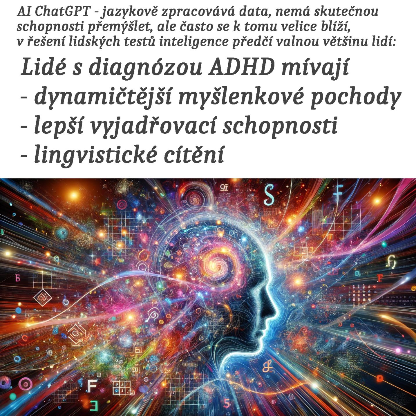 Neurodivergence - ADHD a dynamika myšlení, vyjadřovací a lingvistické schopnosti,...