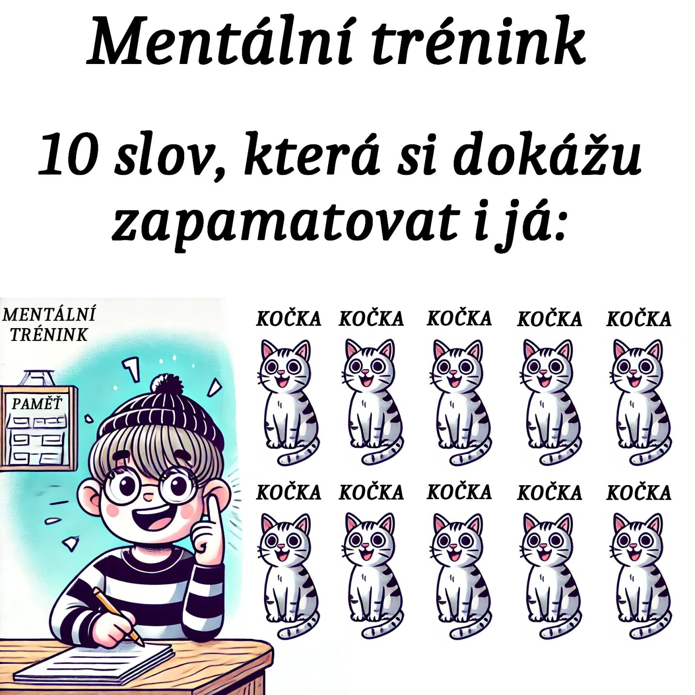 Zadání zní: "1 minuta: Zkuste vyjmenovat 10 slov a poté si je zpětně vybavit."