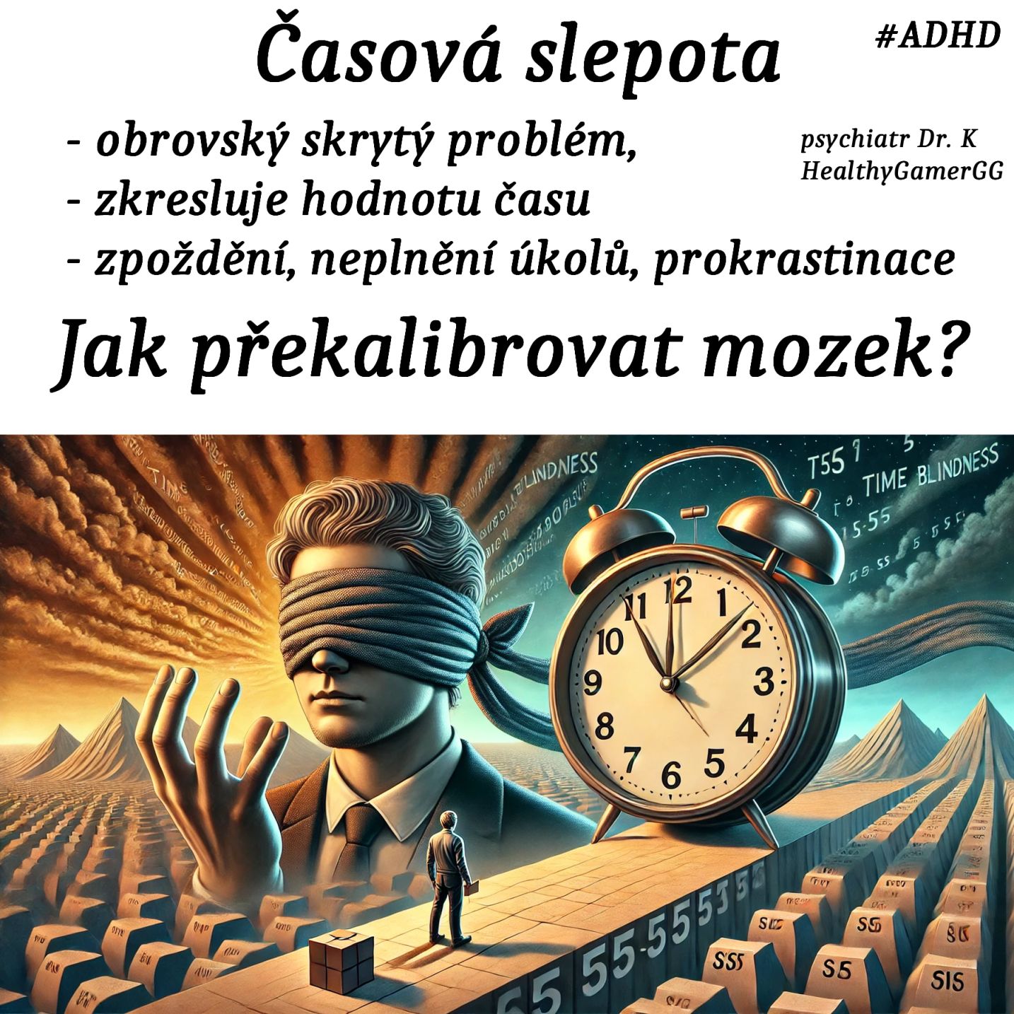 Dr. K (psychiatr z HealthyGamerGG) ve videu vysvětluje časovou slepotu jako jednu z nejvážnějších, ale často přehlížených obtíží spojených s ADHD.