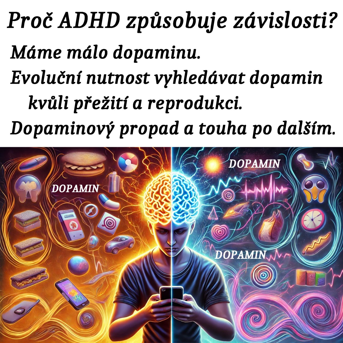 ✔ Lidé s ADHD mají vyšší sklon k závislostem kvůli nízké hladině dopaminu, impulzivitě a vyhledávání okamžité odměny.