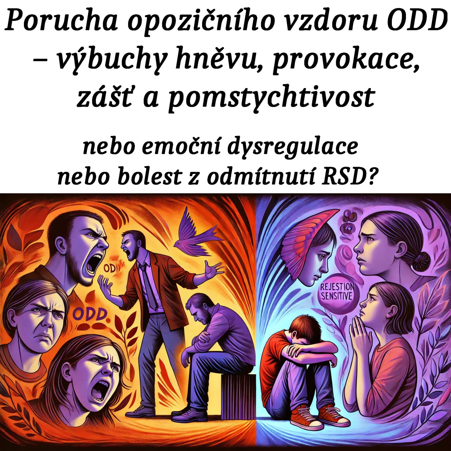 Tady je přehledný a srozumitelný výklad poruchy opozičního vzdoru (ODD) v porovnání s emoční dysregulací u ADHD a RSD (Rejection Sensitive Dysphoria), včetně rad, jak s těmito projevy pracovat. Čerpáno ze srovnávacích odborných studií a aktuálních přehledů výzkumu.