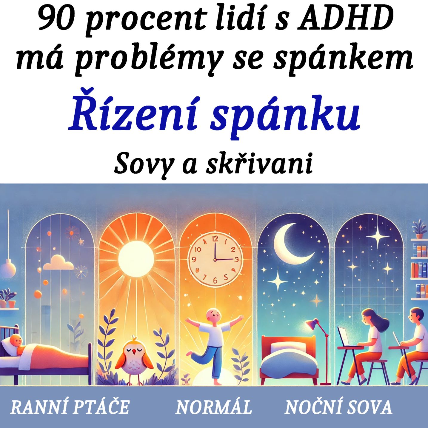 Řízení spánku, sovy a skřivani (chronotypy) – 90 procent lidí s ADHD má problémy se spánkem